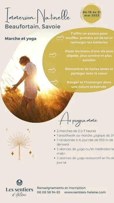 Grâce à la randonnée, à la marche consciente, au yoga et à la relation avec la nature je t’invite à cheminer vers la paix intérieure.